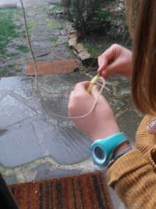 Giorno 7- giovedì 12 marzo 2020: diciamo che lo star fermi può abbattere o aguzzare l’ingegno…qui sembra che l’ingegno si stia riattivando. Alla fine, vedendo il bicchiere mezzo pieno, siamo a casa, sani, in famiglia, abitiamo da pochi mesi in campagna- quindi aria buona e tanta campagna intorno, ed abbiamo dei vicini di casa da conoscere a distanza. Oggi, mentre vedevamo il film della giornata “Jumanji” (perché non lo avevo mai visto?? è magnifico!!!), un filo con attaccato un maccherone con dentro un messaggio, è arrivato davanti alla nostra porta finestra. I nostri vicini di sopra, che chiamerò Piano 11 anni e Flauta 14 anni, dagli strumenti che suonano benissimo, hanno trovato un modo per comunicare e passarsi informazioni tra minorenni privi di cellulari 😉 Hanno conversato così per una mezz’oretta buona, era il loro primo contatto con Nenè che è sempre stata curiosissima di conoscerli.