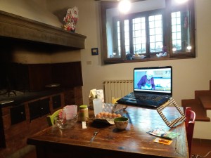 Giorno 8- venerdì 13 marzo 2020: COMPLEANNO DI TRE MIE CARE AMICHE! in questa bolla temporale dove tutto rallenta e facciamo cose nuove mi sento alleggerita dal non dover controllare continuamente il cell per il lavoro. Lo so che è una piccola cosa, ma questa mancanza di cui improvvisamente ho notato mi sta facendo capire tante cose della mia quotidianità prima di questa quarantena, della vacanze anche vissute cercando prima una connessione poi iniziando a guardarmi intorno, e dire che io amo viaggiare più di ogni altra cosa ma vi potrei dire dove un cellulare prende bene e dove no….c’è qualcosa che non va, questa questione va affrontata quando e se torneremo alla normalità. Non vi racconto dei giornali, delle notizie, dei casi che aumentano esponenzialmente, dei decreti di Conte che si susseguono a ritmo stringente, della crisi economica in cui stiamo per finire, del passaggio da epidemia a pandemia, vi continuerò a raccontare delle nostre giornate e di quello che questa esperienza ci sta insegnando di noi. Qualcuno dice che nella difficoltà ognuno è se stesso realmente, vediamo che persone siamo. Oggi abbiamo iniziato le pulizie di casa e dopo pranzo siamo andati a fare una bella camminata nei boschi intorno casa di circa 8 km. La cosa bella di star qui ora è questa possibilità di camminare senza incontrare nessuno. I due mi hanno portato nel loro “posto magico” e poi a fare una sorta di canionyng in pieno inverno, è stato molto bello e al ritorno ci aspettava la MUSICA ore 18, una nuova iniziativa italiana per portare un po’ di sorrisi a tutta la nazione. Abbiamo cantato anche noi qui alla casa di Pratolino con i nostri vicini e i nostri soprini. E’ stato molto bello! W la MUSICA